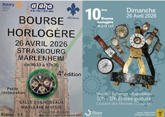 Dépêche: Bourses de Blaye et Marlenheim Admin Afaha | 24 avril 2026 Dernière minute: Ce dimanche 26 avril rendez vous nombreux aux bourses horlogères de Marlenheim à la Salle Des Roseaux et de Blaye au Couvent des Minimes.